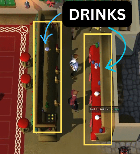 Once you have his drink order, head behind the bar to find exactly what he wants. Drinks can be found on both sides!