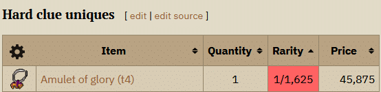 Are you feeling lucky? With a 1/1625 chance per roll and an average of 5 rolls per hard casket you have roughly a 1 in 325 chance per clue to get a Amulet of glory (t4).